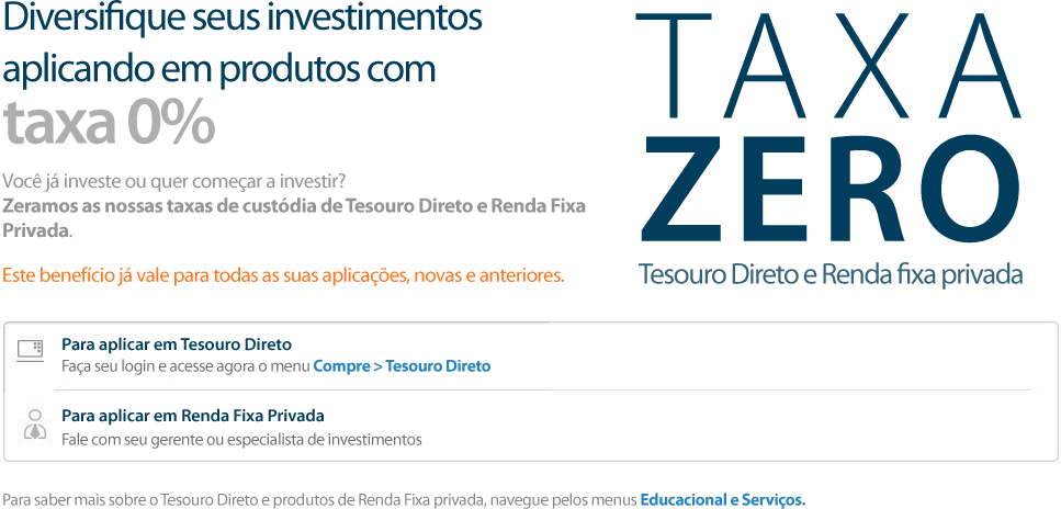 Novidade: taxa 0% de custódia em Tesouro Direto e Renda Fixa Privada